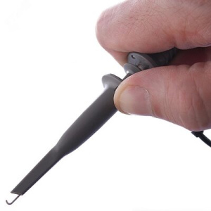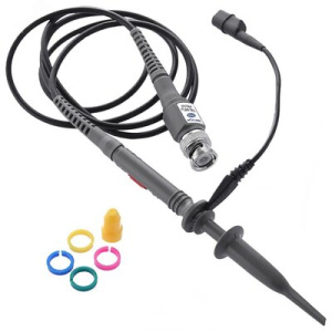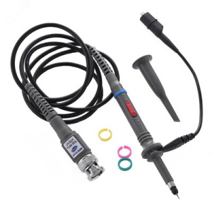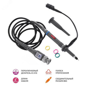 В современной практике ремонта и настройки электронного оборудования осциллограф стал незаменимым измерительным прибором. Для подключения осциллографа к исследуемым цепям необходим пробник. В зависимости от диапазона частот, амплитуды сигнала, а также типа исследуемой цепи необходимы различные пробники. МЕГЕОН 25100 представляет собой компактный и удобный пробник для осциллографа. Данный пробник имеет переключатель деления 1х/10х. Полосу пропускания 100 МГц. Так же имеется регулировка компенсации пробника. В комплекте так же идут маркерные цветные кольца для того, чтобы было удобнее определять к какому каналу по цвету маркера подключена ручка щупа. Для замеров в не самых удобных местах есть специальные колпачки, так же есть и колпачок- крюк, для зацепа к проводам измеряемого сигнала. Соединительный разъём соответствует стандарту BNC.