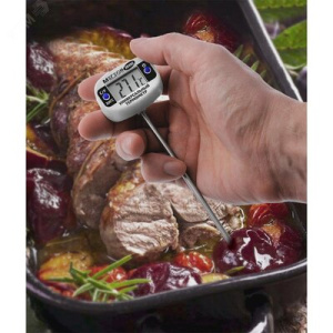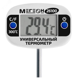 МЕГЕОН 26100 - новинка в модельном ряду цифровых термометров для промышленных и бытовых нужд. Представленная модель предназначена для замеров температуры с высокой точностью контактным методом в диапазоне -50 ... 300°C. Помимо этого изделие имеет вторую единицу измерения- Фаренгейты. Отличительной особенностью является возможность поворота экрана на 180°. Ручная установка единиц измерения и функция автоматического выключения при длительном простое, делают прибор более удобным в обращении. Зонд термометра изготовленный из нержавеющей стали, позволяет применять измеритель в отраслях связанных непосредственно с пищевыми продуктами, с нефтехимическими составами, с агрессивными жидкостями и материалами. Эргономичный дизайн и компактные размеры в полной мере смогут оценить профессионалы и любители.