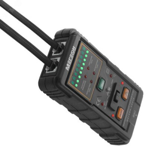 Многофункциональный ручной кабельный тестер с расширенным перечнем совместимой проводки, расширенными возможностями и более широкой областью применения. К сновным функциям прибора можно отнести: возможность поиска проводника, подключенного к разъемам RJ11, RJ45 и BNC, а также других типов проводников при использовании переходника. При этом поиск проводника не требует снятия изоляции, что делает процесс более быстрым и удобным, а также дает возможность поиска точки разрыва проводника. Возможность осуществлять поиск проводника, подключенного к любому типу маршрутизаторов, коммутаторов и другому низковольтному оборудованию. Проверка целостности сетевого кабеля, порядка витой пары, выявление обрыва, короткого замыкания, перестановки пар, выявление реверсированных и расщепленных пар. Проверка уровня напряжения полярности. Тестирование телефонных кабелей, идентификация режимов работы (свободно, вызов, занято) и идентификация выводов Tip и Ring («плюс» и «минус» линии).