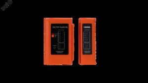 Тестер кабеля предназначен для тестирования и обнаружения короткого замыкания в проводке и устранения неполадок в перекрестных сетях. Подходит для витой пары и телефонного кабеля. Устройство состоит из двух функциональных блоков – передатчика и приемника, которые подключаются к концам кабельной линии через разъемы RJ45 или RJ11. Устройство работает от батареи 6LR61 тип ''Крона'' 9В (батарея в комплект не входит).