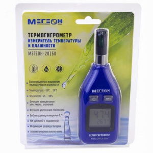 Цифровой термогигрометр МЕГЕОН 20150 от известной российской торговой марки МЕГЕОН представляет собой компактное устройство для измерения параметров влажности и температуры воздуха. Благодаря использованию качественных комплектующих и современного программного обеспечения, прибор позволяет одновременно проводить измерения температуры воздуха и относительной влажности. Также имеется поддержка стандартных функций — вычисление максимальных и минимальных показателей, а также функция удержания текущих показаний (Hold). Большой ЖК-дисплей с интегрированной подсветкой дает возможность использовать прибор даже в плохоосвещенных помещениях. Прибор отличается простой и понятной настройкой, что не требует специальных знаний и навыков при эксплутации. Измеритель станет незаменимым помощником в быту и промышленных сферах.