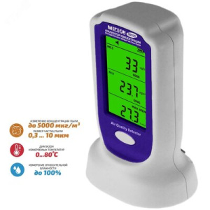 МЕГЕОН 08030 - цифровой анализатор мелкодисперсных твёрдых частиц. Предназначен для стационарной установки в местах, где необходим контроль концентрации пыли. В дополнение осуществляет измерения температуры и относительной влажности. Прибор прекрасно подойдёт для размещения в кабинетах, помещениях и производственных площадках. Идеально подходит для применения в цехах абразивно- струйной очистки материалов или жилищах рядом с транспортными магистралями. Измеритель выгодно отличается способностью работать с частичками размером 0,3 ... 10 мкм, обширным набором контролируемых параметров, крупным контрастным дисплеем с подсветкой зелёного цвета. Обладает тремя уровнями визуальной и звуковой сигнализации, которая активируется при превышении определённого количества микрочастиц в кубическом метре воздуха.