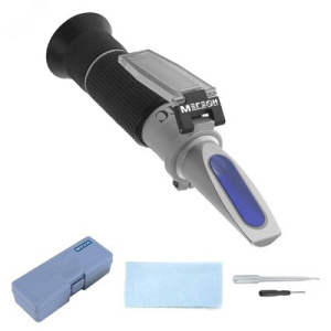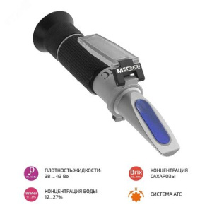 Рефрактометр для меда МЕГЕОН 72006 относится к оптическим измерительным приборам и предназначен для определения содержания сахарозы в мёде. Рефрактометр представляет собой корпус из качественного алюминиевого сплава и, установленных в него окуляра и призмы. Измерения производятся путём вычисления коэффициента преломления исследуемого вещества и проецировании отраженного света на специально градуированный экран. Дополнительно можно произвести замеры количества воды и общей плотности жидкости. Работа с прибором проста и не требует специальных навыков. Эксплуатация не требует особых условий, а хранение в свою очередь может осуществляться с другими инструментами. С целью увеличения продолжительности работы и избежания повреждений в комплекте поставляется ударопрочный футляр. Срок службы составляет 3 года.