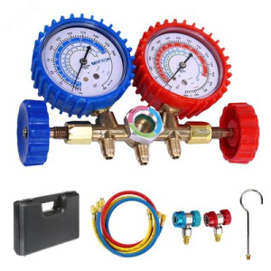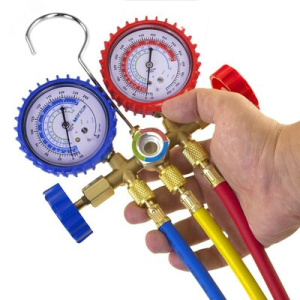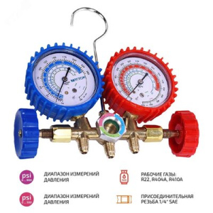 МЕГЕОН 51750 - это манометрическая станция (коллектор), имеющая два манометра, 2 вентиля, три штуцера и смотровое окно. Представляет собой измерительный прибор, предназначенный для полного цикла техобслуживания. Позволяет одновременно измерять давление в обоих контурах, проводить вакуумирование, заправку и дозаправку хладагентом. Для удобства на шкалах нанесены температуры кипения хладагентов R22, R404a, R410a. В комплекте имеется крючок для подвешивания и быстросъёмные муфты. В дополнение к ней идеально подходят вакуумные насосы нашего производства. Она найдёт широчайшее применение у специалистов занимающихся монтажом, ремонтом и обслуживанием оборудования, которое работает с вышеперечисленными газами. В качестве примеров можно привести бытовые, торговые и промышленные холодильники, климатические установки, автокондиционеры и т.д.