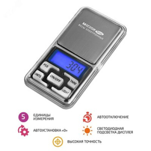 МЕГЕОН 50002 - новинка в модельном ряду бытовых электронных весов с диапазоном измерения 0,01 ... 200 грамм. Модель имеет компактные размеры и маленький вес, позволяющие переносить весы в кармане брюк. Благодаря функции автотестирования после включения и пяти единицам измерения достигается максимальное удобство в эксплуатации, а также применение их в большом количестве сфер деятельности человека от производства до домашнего использования. При помощи режима расчёта количества упрощается фасовка различной мелкой сыпучей продукции, например: бисера. Высокое качество комплектующих обеспечивает низкие показатели базовой погрешности при взвешивании. Наличие интегрированной подсветки ЖК- дисплея гарантирует устойчивое чтение полученных значений даже в условиях недостаточной видимости. Прибор по достоинству оценят профессионалы и любители.