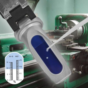 МЕГЕОН 72024 - это рефрактометр, предназначенный для измерения концентрации смазочно- охлаждающих жидкостей. Имеет две шкалы: М-10 позволяет контролировать большинство видов СОЖ, представленных на рынке, к которым относятся минеральные, полусинтетические и синтетические, а MDT - подобные растворы, но только с содержанием силиконовых присадок. Принцип действия прибора заключается в проекции отраженного света на экран с градуировкой, пройдя перед этим через проверяемое вещество. Для проверки необходимо нанести две- три капли на плоскость призмы и придавить прижимным стеклом. Далее настроить фокусировку и считать показания. Измеритель не требует источников питания, специальных знаний и навыков. Прост в обращении, а благодаря наличию автоматической температурной коррекции достигается максимальное удобство при эксплуатации.