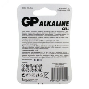 Батарейка пуговичная алкалиновая GP A76 - 2 шт. на одном блистере