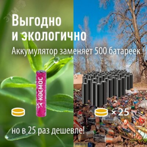 Ni-Mh (никель-металлогидридные) аккумуляторы Космос - заменяют обычные батарейки типоразмера ААА (также называют ''мизинчиковые'', на приборах-потребителях может обозначаться как LR03, R03, UM4). Быстро окупятся - можно заряжать сотни раз, экономя на обычных батарейках. В упаковке 12 шт - достаточно для большинства приборов. Емкость 1100 мАч - для мощных устройств. Важно - перед первым использованием аккумуляторы нужно зарядить.