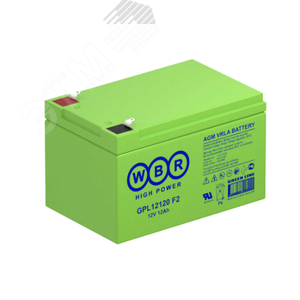 Аккумуляторная батарея WBR серии GPL 12120 - герметизированные, выполненные по технологии AGM, свинцово-кислотные аккумуляторные батареи общего применения с увеличенным 12 летним сроком службы в буферном режиме или 260 циклов заряда-разряда в циклическом режиме при 100% разряде. Эти высокоэффективные перезаряжаемые батареи не требуют обслуживания в течение всего срока службы.