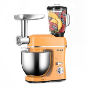 Многофункциональный планетарный миксер ''3 в 1'' КТ-3431 поможет вам смешать ингредиенты, взбить яичный белок или сливки. Миксер оснащён планетарной системой смешивания – во время работы насадка вращается вокруг своей оси и одновременно движется по окружности по внутреннему объёму чаши. Венчик служит для взбивания яичных белков, сливок, замешивания жидкого теста. Насадка для смешивания используется для негустых ингредиентов, приготовления картофельного пюре. В комплект мясорубки входят 3 решётки для изготовления фарша, специальные насадки для колбас и кеббе, насадка для выдавливания форменных изделий из теста, насадка для печенья. В комплекте с блендером идёт вместительная чаша с мерной шкалой ёмкостью 1,5 литра.
