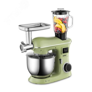 Многофункциональный планетарный миксер ''3 в 1'' КТ-4404 поможет вам смешать ингредиенты, взбить яичный белок или сливки. Также он может перемолоть мясо на фарш и смешать фруктовые и фитнес-напитки, молочные коктейли, соусы и детское питание. Миксер оснащён планетарной системой смешивания – во время работы насадка вращается вокруг своей оси и одновременно движется по окружности по внутреннему объёму чаши. Венчик служит для взбивания яичных белков, сливок, замешивания жидкого теста. Насадка для смешивания используется для негустых ингредиентов, приготовления картофельного пюре. Миксер оснащён чашей ёмкостью 7 литров. Она изготовлена из нержавеющей стали, в ней можно смешивать даже горячие ингредиенты. Мясорубка позволяет рубить мясо с производительностью 0,5 кг/мин. В комплекте идут 3 решётки с различным диаметром отверстий для приготовления фарша.