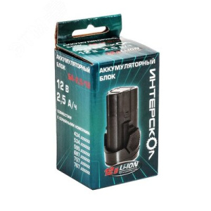 Аккумуляторная батарея системы АПИ-Т 12В с емкостью 2,5 А*час. Применима для всего модельного ряда, использующего аккумуляторы туннельного типа 12 В Интерскол.