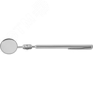 Круглое зеркало, диаметром 30 мм, установленное на шарнире, закрепленном на телескопической стреле. применяется для визуальной диагностики узлов и агрегатов в труднодоступных местах автомобильной и другой техники.