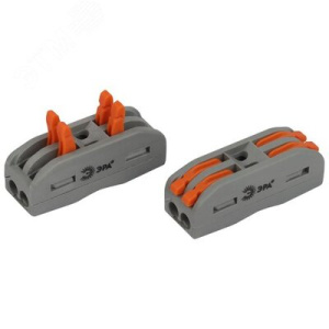 Универсальные проходные клеммы 222 серии с рычагами ЭРА предназначены для создания многократных соединений всех типов проводников (медных одножильных и многожильных, оконцованных втулочными наконечниками НШвИ) без использования специального инструмента. При подсоединении проводников с изолированными наконечниками НШвИ их максимальное сечение должно быть на один размер меньше максимального сечения клеммы. Конструкция механизма с рычажками обеспечивает многоразовый монтаж и демонтаж всех типов медных проводников сечением до 4.0 мм2. В состав контактной части входит лужёная латунь с высоким содержанием меди, что гарантирует хорошую электропроводность и низкий нагрев клеммы. Прижимной механизм изготовлен из высококачественной легированной пружинной стали, обеспечивая надежный зажим проводника и стабильность характеристик при многократном использовании.