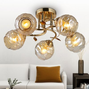 Коллекция Rivoli Ashley объединяет в себе красивые универсальные люстры с арматурой золотого цвета и фигурными стеклянными плафонами. Мягкое тонирование плафонов понравится людям, которые любят уютный не слишком яркий свет. Люстры Ashley подойдут на низкий или средний потолок, применяются с лампами Е14 60 Вт. Надежная арматура с плавными линиями и декоративными металлическими веточками порадует даже самого требовательного покупателя. В красивой коллекции Rivoli Ashley вы найдете люстры в гостиную под 3 и 5 ламп. Данная люстра под 5 ламп освещает 15 м2, что делает ее беспроигрышным решением для любой жилой комнаты. Дизайнерская люстра Rivoli Ashley в теплых радостных тонах создаст качественный, комфортный для глаз свет и уютную домашнюю атмосферу.