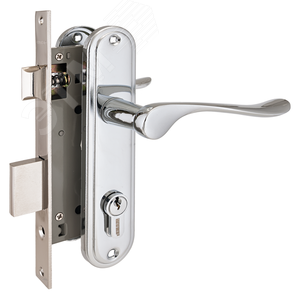Замок врезной цилиндровый с ручками для деревянных дверей АЛЛЮР 127/1 CP хром