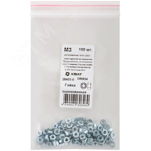 Гайка DIN934 М3 шестигранная оцинкованная (100 шт)