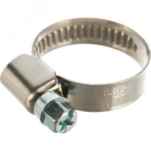 Хомут червячный обжимной нержавеющая сталь 16-25 (1 шт.)