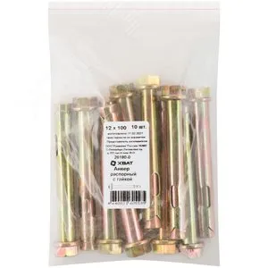 Предназначен для монтажа различных элементов (стальные конструкции, ограждения, барьеры и проч.) в основания из полнотелых материалов. Состоит из втулки, шпильки с конусом на конце и гайки-прокладки.