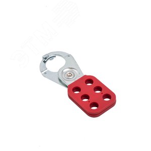 Накладка множительная с ограничителем затвора из оцинкованной стали и винилового покрытия. Диаметр зажимного кольца 25 мм. Рассчитана на 6 навесных замков (дужка не более 10,5 мм). Устойчива к УФ-лучам, химически агрессивным средам и температурам. Цвет винилового покрытия красный.