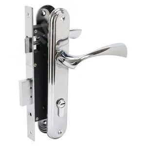БУЛАТ ЗВ4-1.03.04 НОМОС хром 5 перф.кл. Замок врезной с/руч (12). Замок врезной с ручками. Предназначен для установки в деревянные двери толщиной 35-45 мм, правого и левого открывания. Дверь может быть закрыта на защелку и открыта с помощью фалевой ручки при открытом засове замка. Один плоский стальной ригель размером 20х44мм. Универсальная защелка. Стальной корпус с подшипником, покрыт полимерной краской. Межосевое расстояние 85 мм. Удаление ключевого отверстия 45мм. Материал ручек - сплав ЦАМ. Комплектация -латунный цилиндровый механизм 62мм, 5 перфоключей, ответная планка, винтовые стяжки.