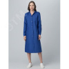 Халат прямого силуэта, длина ниже колена, центральная застежка на пуговицы, втачной длинный рукав, отложной английский воротник, боковые вместительные карманы, нагрудный уменьшенный кармана, регулировка объема по талии вшивным поясом на пуговице, рукава с манжетами, застежка петля/пуговица.