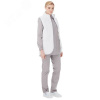 Стеганый жилет прямого силуэта с центральной застежкой на молнию, со скругленными бортами. Воротник стойка на подкладке из мягкого флиса. Два нижних накладных кармана и один нагрудный внутренний карман на подкладке. Все срезы окантованы бейкой из основной ткани.