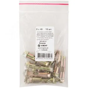 Предназначен для монтажа различных элементов (стальные конструкции, ограждения, барьеры и проч.) в основания из полнотелых материалов. Состоит из втулки, шпильки с конусом на конце и гайки-прокладки.