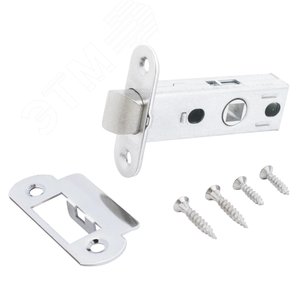 Универсальная защелка врезная для установки на деревянные межкомнатные двери. Материал - сталь оцинкованная штампованная, гальваническое покрытие. Под ручку с квадратом 8мм. Удаление ключевого отверстия - 45мм. Овальная торцевая планка для возможности установки с помощью электроинструмента. Ширина планки - 18мм. Габариты корпуса - 72.5х22х15мм. В комплекте - защелка, ответная планка и белый пластиковый вкладыш к ней, саморезы.