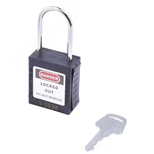Замок навесной. Пластиковый корпус устойчивый к УФ-лучам, химически агрессивным средам и температурам, размер корпуса 45x40x20 мм (ВxШxГ), дужка из нержавеющей стали, высота от корпуса до дужки 38 мм, диаметр дужки 4 мм, латунный цилиндр (6 пин) с 1 ключом, цвет корпуса черный, система ключей KA/KD/MK/KAMK.