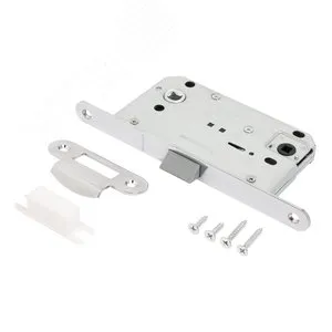 АЛЛЮР АРТ 5300-P-WC CP хром с фиксатором Защёлка (40). Универсальная защёлка врезная для установки на деревянные межкомнатные двери. Материал - сталь, гальваническое покрытие.Под ручку с квадратом 8 мм и сантехническую завертку с квадратом 6 мм. Удаление ключевого отверстия - 50 мм. Межосевое расстояние - 96 мм. Овальная торцевая планка для возможности установки с помощью автоматического инструмента. Ширина планки - 18мм. Габариты корпуса - 200х90х20 мм. Защелка из ударопрочного пластика.