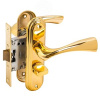 БУЛАТ ЗЩ1-Д03.05 (П) НОМОС золото ПРАВАЯ ВНУТР/ЛЕВАЯ НАРУЖНЯЯ с фиксацией Защелка (12). Защелка врезная с механизмом дополнительного запирания. Предназначена для дверей сантех.узлов и прочих помещений, где необходима фиксация изнутри. Толщина дверного полотна - 35-45мм. Материалы - корпус - сталь, ручки - алюминиевый сплав, Межосевое расстояние - 47мм.