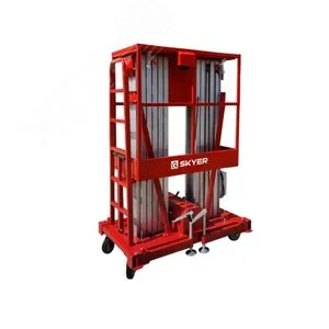 Двухмачтовый телескопический подъемник SKYER GTWY12-200 — надежное устройство для подъема людей и грузов на высоту до 14 м для проведения монтажных, ремонтных и других работ. Оборудован специальной скобой для зацепа страховочного троса. Грузоподъемность модели составляет 0.2 т, что достаточно для подъема двух рабочих и необходимого инвентаря. Выдвижные телескопические мачты из легкого прочного алюминиевого сплава обеспечивают плавный подъем рабочей платформы. Спиртовой уровень позволяет контролировать вертикальное положение подъемника. Выдвижные опоры — аутригеры — обеспечивают модели устойчивость. При необходимости SKYER GTWY12-200 можно остановить и спустить с помощью кнопок экстренной остановки и вентильного устройства аварийного спуска платформы. Конструкция закреплена на мобильном основании с гидроэлектроприводом и блоком питания. Малые габаритные размеры и вес позволяют использовать подъемник в условиях ограниченного пространства.