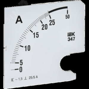 Шкала сменная для амперметра Э47 25/5А класс точности 1,5 96х96мм