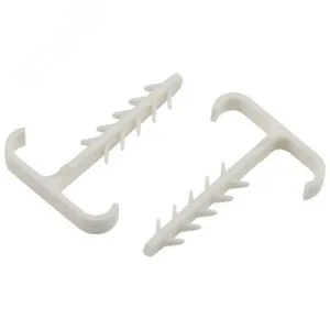 Дюбель-хомуты ЭРА Т-образные сочетают в себе сразу два элемента: дюбель и скобу, что позволяет проложить 2 кабеля одновременно как вертикально, так и горизонтально. Одинаково эффективны при прокладке кабеля в кирпичных и блочных стенах, бетонных перекрытиях, потолках, полах и фундаментах. - Надежное крепление проводника в стене благодаря увеличенным зубьям. - Материал: полиэтилен высокого давления, не поддерживает горение.