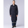 Халат длина ниже колена, центральная застежка на петли и пуговицы, отложной воротник, регулировка объема по талии поясом, нагрудный карман с открытым входом, нижние карманы с открытым входом, кант по кокетке, манжеты на пуговице