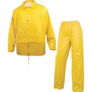 Куртка и брюки влагозащитные. Швы прошитые, дополнительно пропаянные с внутренней стороны. Куртка- Отложной воротник. Втачной капюшон, убирается в карман воротника на молнии. Центральная застежка-молния. 2 накладных кармана с клапанами. 2 вентиляционных отверстия под кокеткой спинки со вставкой из трикотажной сетки с внутренней стороны. Вентиляционные отверстия (люверсы) в области подмышек. Брюки с поясом на эластичной ленте, в среднем шве передних половинок брюк - разрез, закрываемый на кнопки.