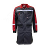 Халат с контрастной отстрочкой с центральной супатной застежкой на пуговицы, с хлястиком по спинке на пуговицы, для регулировки объёма. С верхними и нижними накладными фигурными карманами с фигурными клапанами на липучку. Рукава с манжетами на пуговицу. В халате используется световозвращающая лента 25мм.