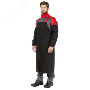 Фартук предназначен для защиты от искр и брызг расплавленного металла, окалины при выполнении сварочных работ, а также для защиты работающих в горячих цехах, в условиях повышенных температур. Рекомендуется к использованию в комплекте с костюмами 1-го и 2-го класса защиты из тканей с огнестойкими свойствами. Использование фартука увеличивает время эксплуатации костюма. Он выполнен из материала с огнестойкой отделкой. Фартук длиной 109 см, с грудкой. На уровне бедер расположены петли из стропы для молотка сварщика. Бретели фартука из термостойкой стропы, с возможностью индивидуальной регулировки по длине и ширине. Застежка на фастекс YKK сзади для легкого застегивания и расстегивания. Крестообразное расположение бретелей равномерно распределяет нагрузку в области спины и не дает им спадать во время работы. По низу фартука расположен разрез-шлица для удобства в динамике.