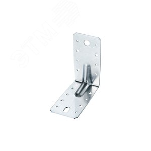 Угол крепежный усиленный -металлическая пластина, согнутая под прямым углом. По центру проходит ребро жесткости. На обоих плечах (сторонах уголка) есть отверстия круглой формы: - по одному отверстию большего диаметра под саморезы, болты, - по несколько отверстий меньшего диаметра под гвозди, шурупы.