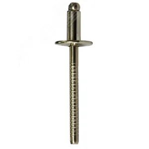 Материалом для изготовления заклепки служит нержавеющая сталь класса A2. В состав крепежа входит цилиндрическая заклепка с полукруглым выпуклым буртом и вытяжная сердцевина из проволоки. Устанавливается изделие с помощью заклепочника.