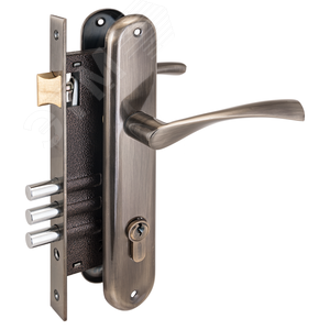 Замок врезной цилиндровый с ручками для деревянных дверей, АЛЛЮР 0203 AB старая бронза