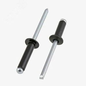 Заклепка вытяжная комбинированная со стандартным бортиком. Перед монтажом заклепки необходимо предварительно просверлить отверстие сверлом, соответствующим диаметру заклепки. В процессе монтажа стержень подтягивает за собой втулку, что позволяет плотно соединить скрепляемые детали. Лишний стержень откусывается.