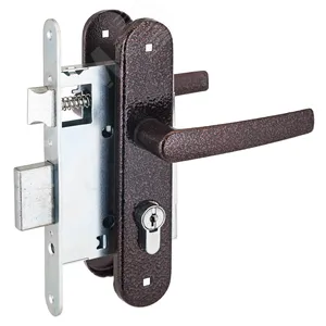 Замок врезной с ручками. Предназначен для установки в деревянные двери толщиной до 65 мм, правого и левого открывания. Стальной оцинкованный корпус, засов с вылетом 22мм. Межосевое расстояние 55мм. Удаление ключевого отверстия 55мм. Габаритный размер 130х85 мм. Ручки - сталь, алюминиевый сплав, покрытие - полимерная краска, крепление - стяжками. Сувальдный механизм запирания, 3 ключа в комплекте.