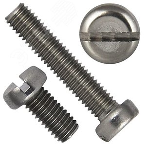 Винт с цилиндрической головкой и плоским (прямым) шлицем класса точности А с номинальным диаметром резьбы от М1 до М10. Устанавливается как самостоятельно, так и вместе с гайками, шайбами.