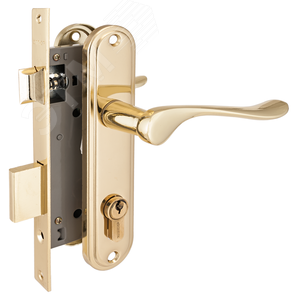 Замок врезной цилиндровый с ручками для деревянных дверей АЛЛЮР 127/1 GP латунь