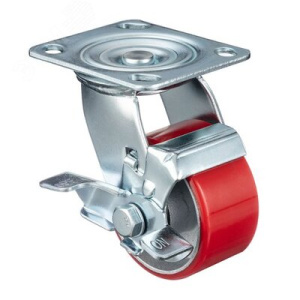 Колесо d=100мм, чугун/полиуретан, поворотное с тормозом, игольчатый, г/п=200кг
