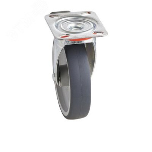 Колесо из термопластичной серой резины твердостью 85 Шор А. Основание: полипропилен. Ступица оснащена подшипником скольжения. Поворотный кронштейн серии NL, оснащен передним тормозом. Тормоз блокирует вращение колеса и вращение вилки относительно площадки крепления. Шина из серой резины, не оставляющей следов, бережно относится к декоративному и хрупкому напольному покрытию в общественных учреждениях, офисных и торговых помещениях. Превосходное скольжение гарантирует минимальное усилие при ручном передвижении. Возможно использование в агрессивных химических средах. Рекомендации для использования: тележки для багажа, для инструментов, для общественных учреждений и пунктов общественного питания, тележки для внутреннего промышленного применения, трубчатые тележки. Температурный диапазон эксплуатации от -20 до +70С. Грузоподъёмность на тележку с четырьмя колесами-до 600кг.