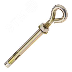 Анкерный болт с кольцом предназначен для крепления различных тяжеловесных конструкций, подвесных систем, крепления конструкций на растяжках в плотных строительных материалах. Может выполнять две функции. Во-первых, с помощью этого анкера можно привернуть какое-либо изделие или деталь. Во-вторых, создается точка крепления для подвесных конструкций. Устанавливается в предварительно просверленное отверстие.