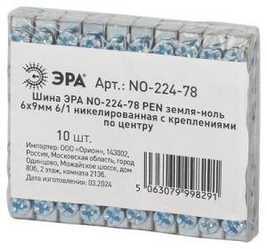 Шина NO-224-78 PEN земля-ноль 6х9мм 6/1 никелированная с креплениями по центру